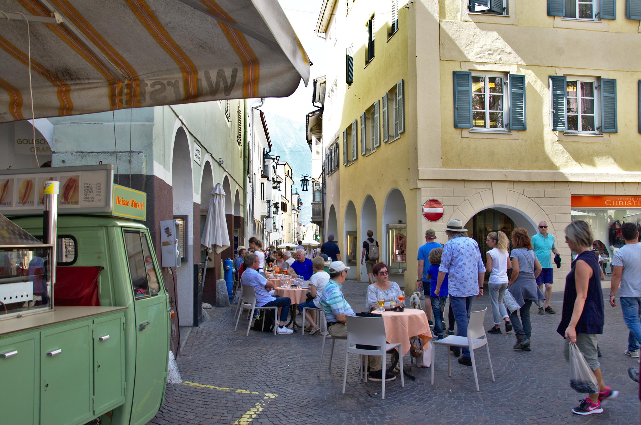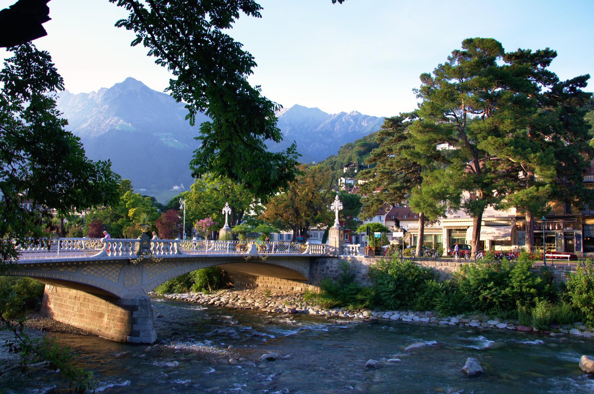 Der Gardasee hat uns nun lange genug verwöhnt und wir wollen noch etwas Neues erleben. Wir packen also unsere Sachen und ziehen weiter nach Meran. Meran ist undglaublich warm, schön, und nach 20 Uhr unglaublich tot. Der Stadtcampingplatz ist teuer, überfüllt und hässlich und wir bleiben nur eine Nacht.