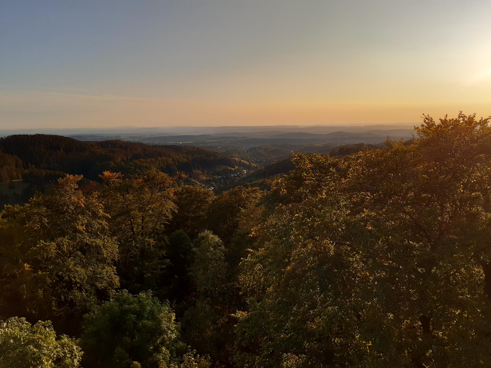 Abendlicher Blick von der Harzer Stempelstelle Kuckholzklippe auf Osterode.